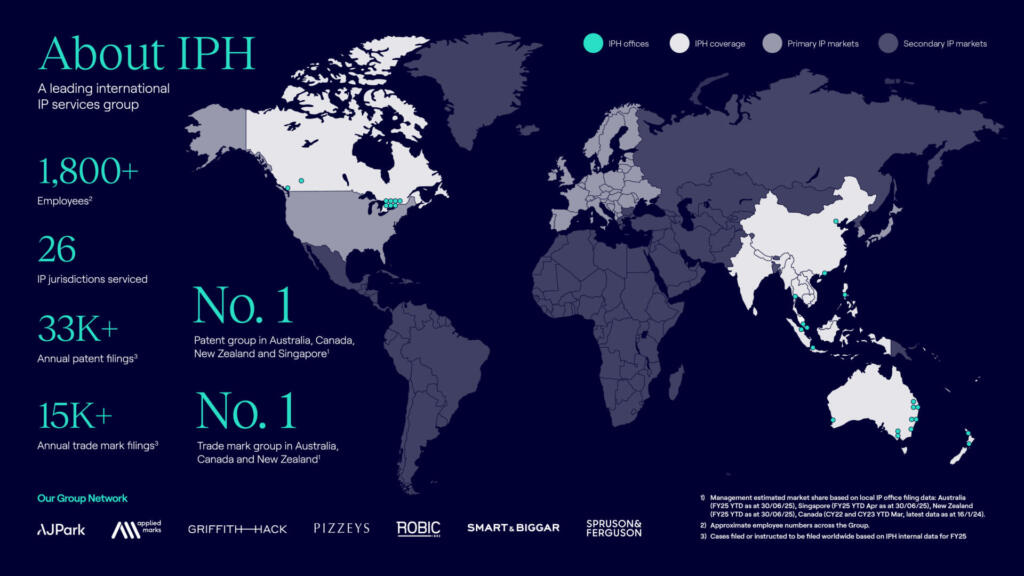 Since listing on the Australian Securities Exchange (IPH) in November 2014, IPH has grown through a series of strategic acquisitions and integrations to become a leading international IP services group, with a market capitalisation of approximately $1.35bn.